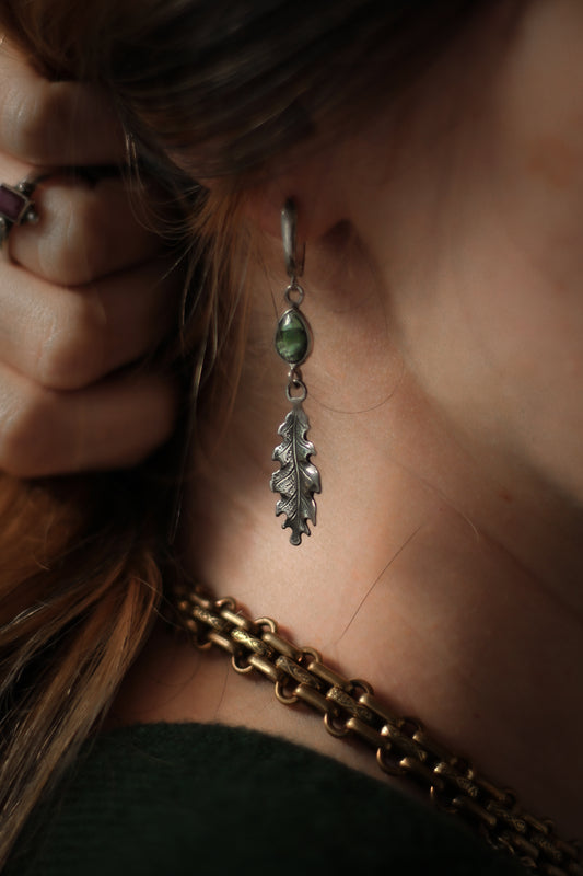 SILVA Seraphinite Sterling Silver Oak Leaf Earrings (clasps)