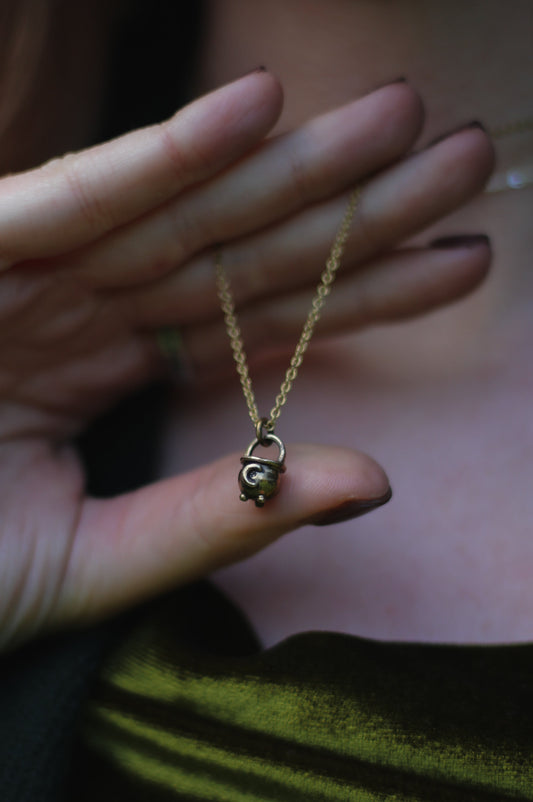 Tiny Witch Cauldron Necklaces in Sterling Silver or Bronze *without stone*