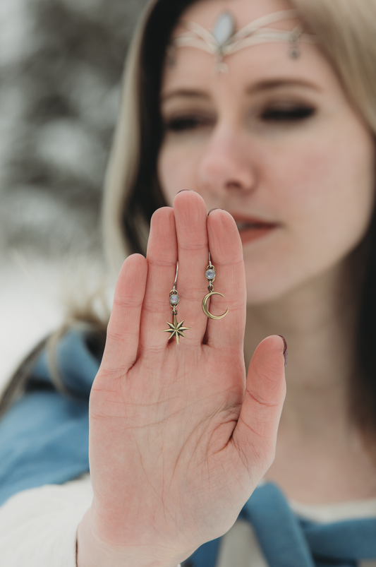 CAELIS Celestial Nightsky Moonstone Earrings in Sterling Silver and Brass