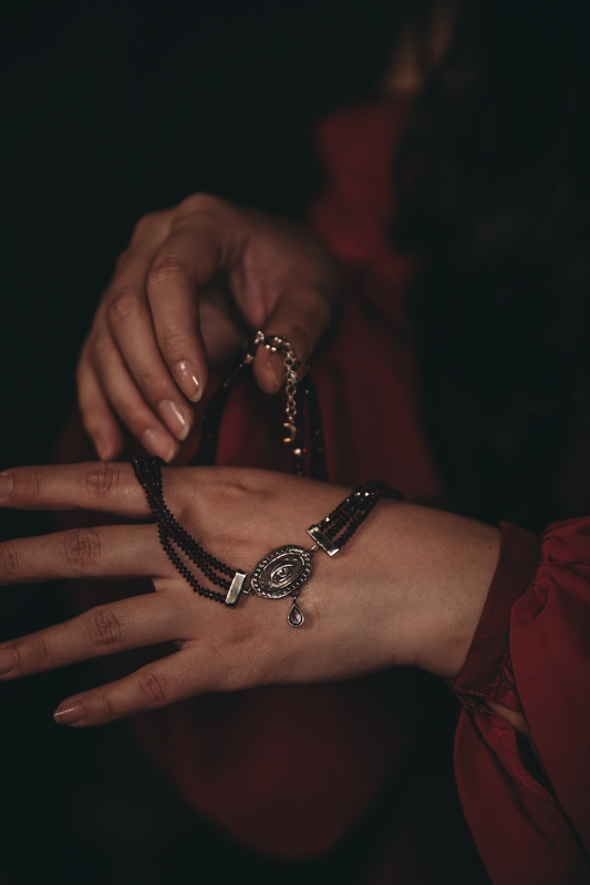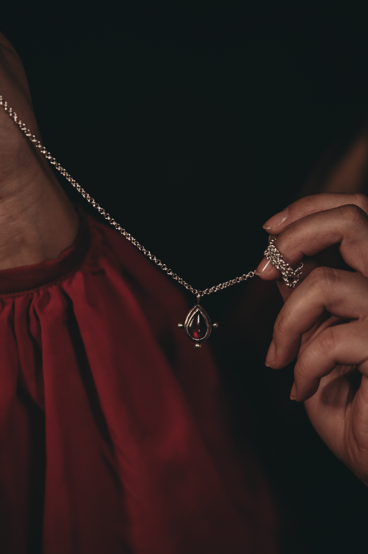 LOVERS EYE Victorian Velvet Choker in Sterling Silver with Garnet Drops