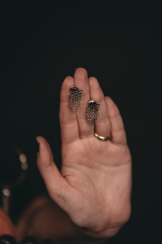 VAELITH Chain Maille Garnet Earrings in Sterling Silver