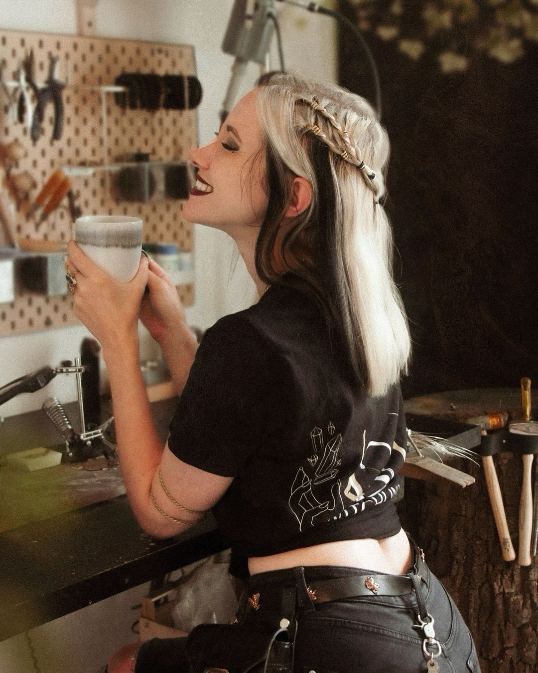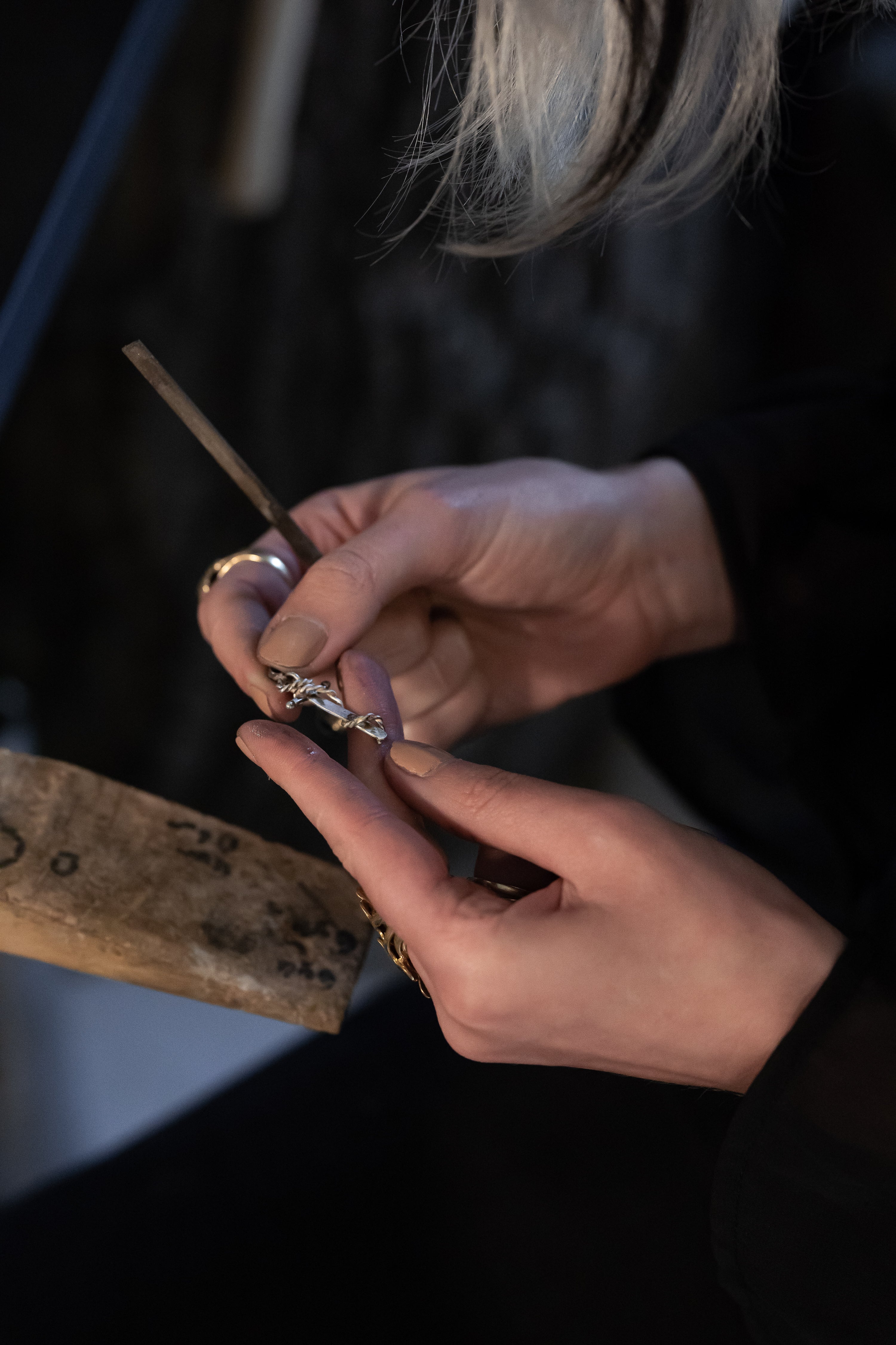 I am Claire, a goldsmith who is in love with everything whimsical and magical. My work is inspired by fantasy worlds, rough nature and ancient spirituality. I work to channel a spark of the archaic energy that lives in every old tree and whispering wind into my jewellery pieces, so you may carry this magic close to you heart, whenever you feel like you may need it.